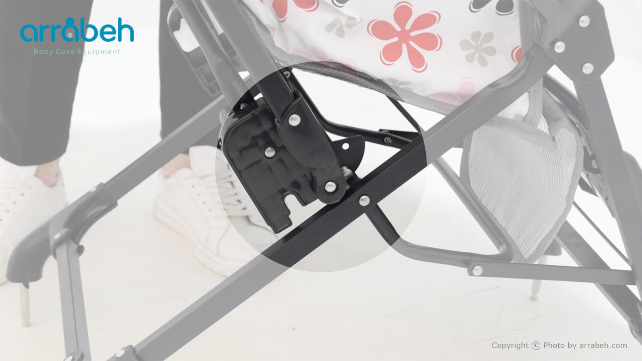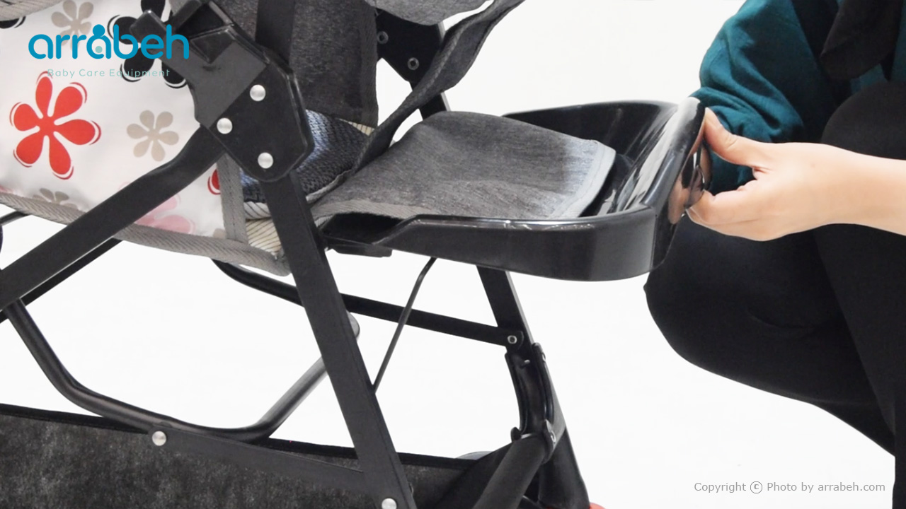 زیرپایی کالسکه برای راحتی بیشتر کودک طراحی شده است. میله تنظیم را در موقعیت مناسب زیر سینی زیرپایی قرار دهید تا پای کودک در وضعیت راحتی قرار گیرد.