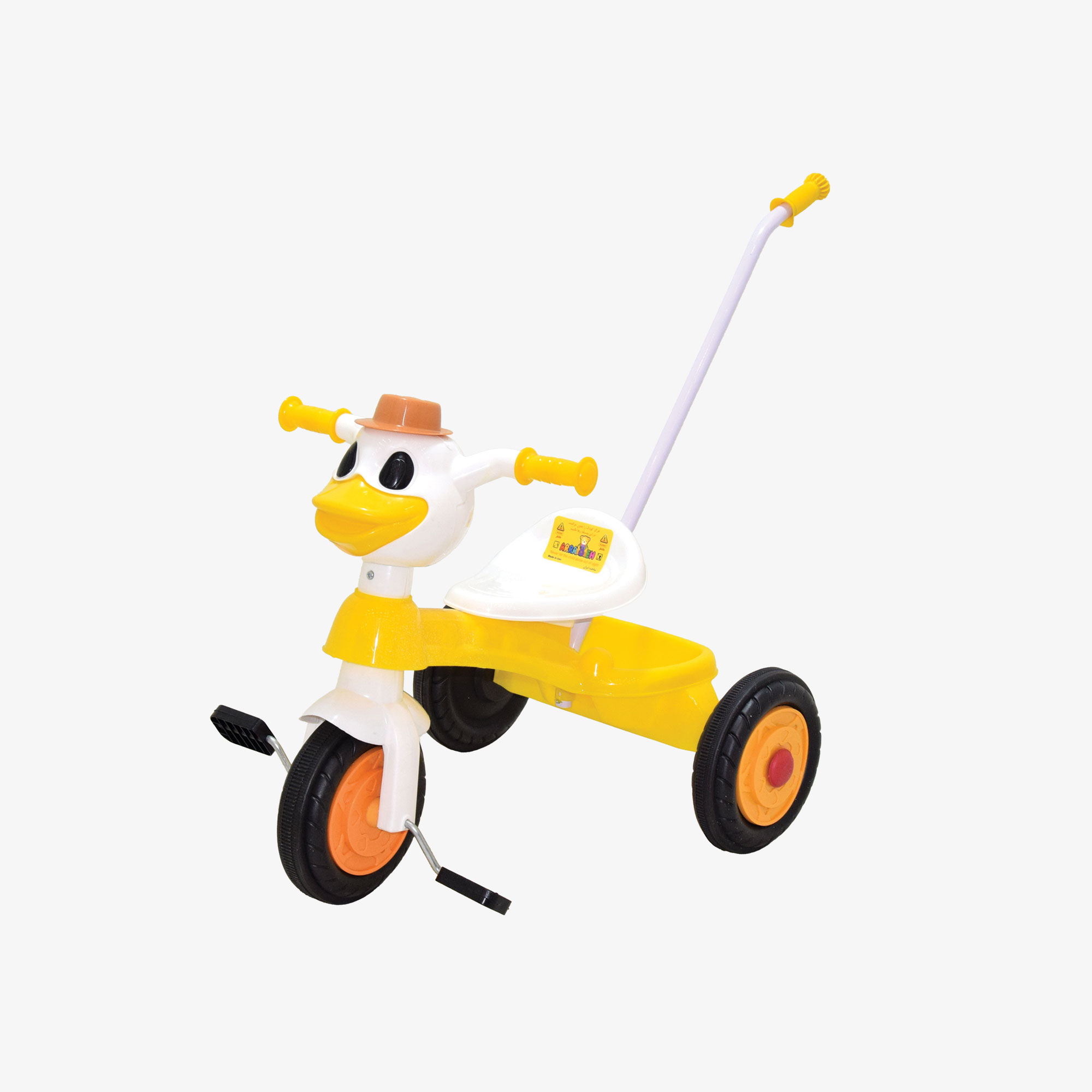 The Danel Tricycle features a plastic frame and a duck-shaped doll, making it highly appealing to children. This beautiful and lovable design encourages children to use the tricycle.
