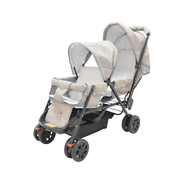 | سایر توضیحات | طراحی پشتسرهم، سایبان مستقل برای هر کودک، سبد جادار، پشتی و جلوپایی قابل تنظیم، فاقد سینی جالیوانی کودک |